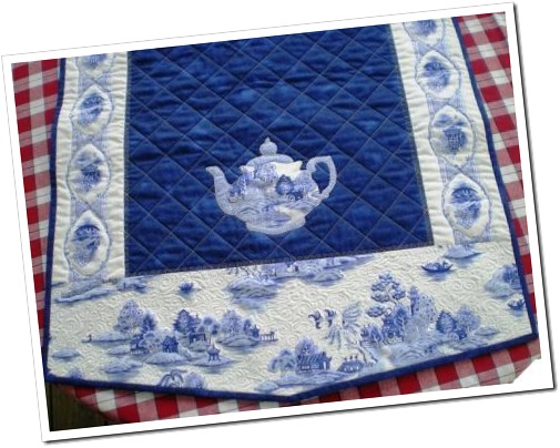 Recently I did a commission for a blue willow table runner. I just love making these and this one was especially fun to make and quilt.